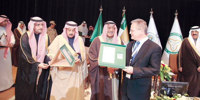 وفي نهاية الحفل قدم الرئيس الفخري للجمعية العلمية السعودية صاحب السمو الملكي الأمير مقرن بن عبدالعزيز دروعاً تذكارية للمتحدثين من عدد الدول، وهم: كريستوف بوليمان البروفسور في المعلوماتية الحيوية وطب الأطفال بالمركز الطبي لجامعة فيندربليت الرئيس المنتخب لجمعية المعلوماتية الطبية، والأستاذ الدكتور أنثوني فيولا رئيس إدارة الطب الحيوي وعلوم المعلومات الصحية في جامعة ايلينوي في شيكاغو، والأستاذ الدكتور البرت واي زومايا مدير مركز توزيع الحاسبات عالية الأداء في مدرسة تقنية المعلومات بجامعة سيدتي الأسترالية، كما كرّم سموه أيضاً الأستاذ الدكتور سيد عبيد البروفسور في علوم الحاسب والطب، مدير المعلوماتية الصحية في جامعة دال هاوسي، ومن ماليزيا عميدة المعهد الماليزي الياباني العالمي للتكنولوجيا الأستاذة الدكتورة روبية يوسف، والبروفسور المساعد وعضو هيئة التدريس في مدرسة الصحة العامة بكلية لندن الملكية الدكتور جوسيب كار، والرئيس السابق لمجلس إدارة الجمعية العلمية السعودية للمعلوماتية الصحية وعدد من المشاركين.