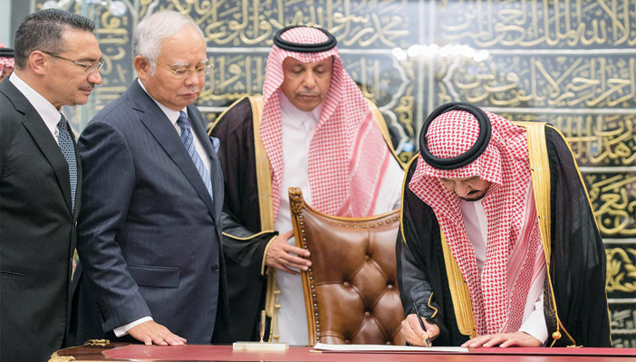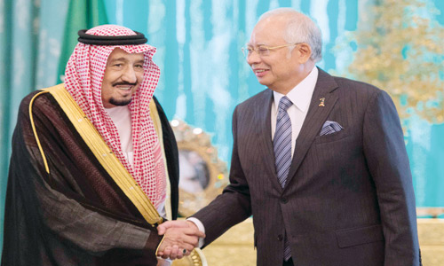عقد خادم الحرمين الشريفين الملك سلمان بن عبدالعزيز آل سعود - حفظه الله - في العاصمة الماليزية كوالالمبور أمس جلسة مباحثات مع دولة رئيس وزراء ماليزيا محمد نجيب عبدالرزاق.