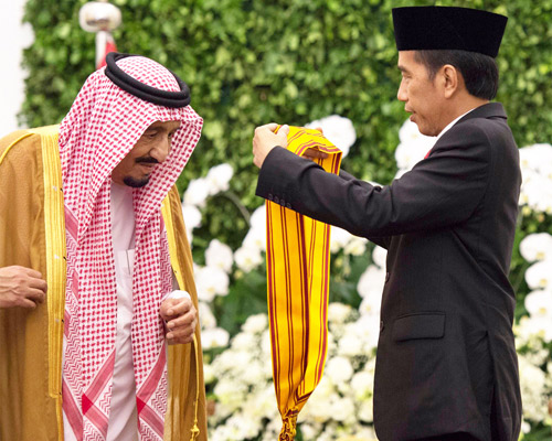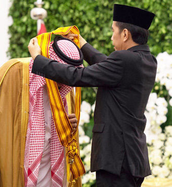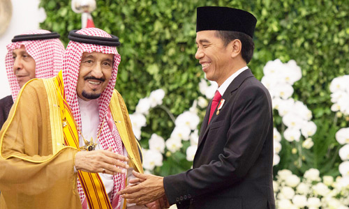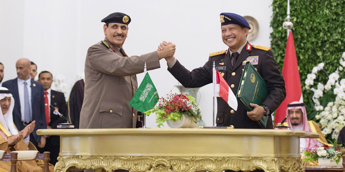 بحضور خادم الحرمين الشريفين الملك سلمان بن عبدالعزيز آل سعود -حفظه الله- وفخامة الرئيس جوكو ويدودو رئيس جمهورية إندونيسيا، تم أمس في قصر إستانه الرئاسي في جاكرتا، التوقيع على إعلان مشترك ومذكرات تفاهم وبرامج تعاون بين حكومتي المملكة العربية السعودية وجمهورية إندونيسيا.