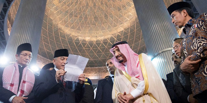 زار خادم الحرمين الشريفين الملك سلمان بن عبدالعزيز آل سعود -حفظه الله- أمس في العاصمة الإندونيسية جاكرتا مسجد الاستقلال، الذي يعد من أبرز المعالم الإسلامية في إندونيسيا. وفور وصول الملك المفدى، كان في استقباله - رعاه الله- فخامة الرئيس جوكو ويدودو رئيس جمهورية إندونيسيا، ومعالي وزير الشئون الدينية لقمان حكيم سيف الدين، وإمام وخطيب مسجد الاستقلال الدكتور نصر الدين عمر، وعدد من المسؤولين.
