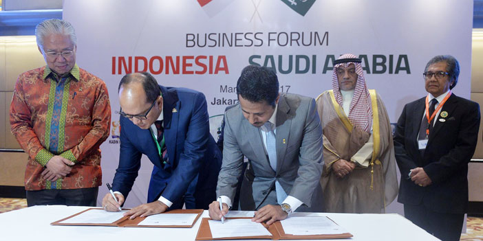 وشهد ملتقى الأعمال السعودي الإندونيسي توقيع عدة مذكرات واتفاقيات شراكة إستراتيجية بقطاعات الطاقة والصحة والإسكان والسياحة بقيمة إجمالية بلغت 13.5 مليار ريال. وشملت اتفاقيات الشراكة ومذكرات التفاهم مشروعات مشتركة في قطاع إنتاج الطاقة الكهربائية، وخدمات الرعاية الصحية والخدمات الطبية، كما شملت مشروعات الإسكان، والتعاون في خلق استراتيجيات طويلة الأمد في توطين الخبرات والكفاءات البشرية والتكنولوجيا المتطورة في مجال الموارد البشرية، كما شملت الاتفاقيات ومذكرات التفاهم المجال السياحي، وخدمات الحج والعمرة.