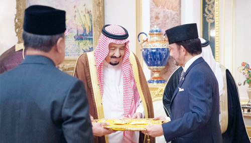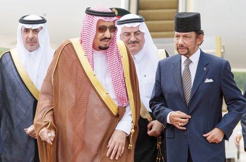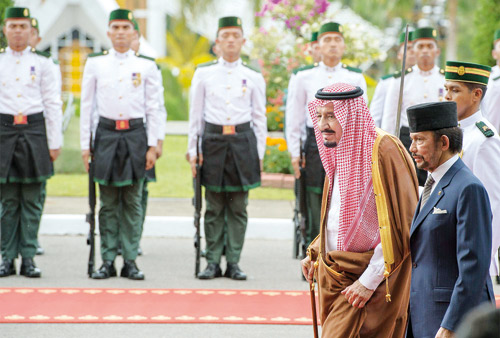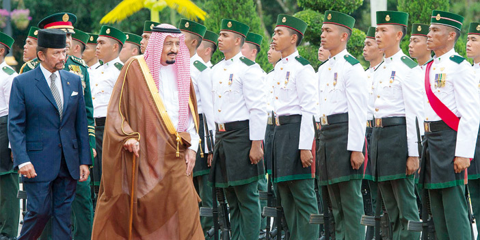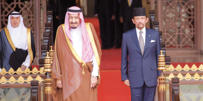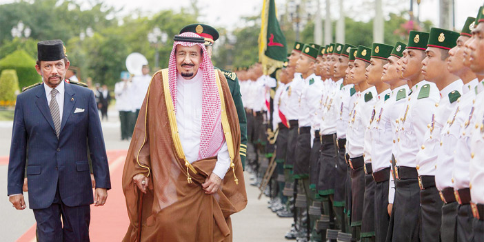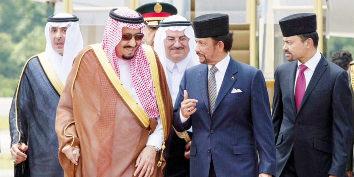 بحفظ الله ورعايته وصل خادم الحرمين الشريفين الملك سلمان بن عبدالعزيز آل سعود إلى سلطنة بروناي دار السلام في زيارة رسمية. وكان في مقدمة مستقبلي خادم الحرمين الشريفين لدى وصوله -رعاه الله- مطار بروناي الدولي جلالة السلطان حسن البلقيه سلطان بروناي دار السلام. كما كان في استقبال الملك المفدى صاحب السمو الملكي الأمير المهتدي بالله بن السلطان حسن البلقيه ولي العهد كبير الوزراء، ومعالي وزير المالية الثاني الحاج عبدالرحمن بن الحاج إبراهيم، ومعالي وزير الشؤون الخارجية الثاني ليم جوك، ومعالي وزير الطاقة والصناعة الحاج محمد ياسين، وعدد من المسؤولين في بروناي، وسفير خادم الحرمين الشريفين لدى بروناي هشام بن عبدالوهاب زرعة، وأعضاء السفارة السعودية في بروناي.