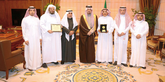 جاء ذلك خلال استقبال سمو أمير منطقة عسير بمكتبه بالإمارة أمس سعادة وكيل إمارة منطقة عسير سليمان بن محمد الجريش وسعادة وكيل الإمارة للحقوق عوض محمد آل سعيد وسعادة المدير المالي والإداري عبدالعزيز العسبلي ومدير عام تقنية المعلومات ناصر بن يحيى القحطاني ومدير إدارة التعاملات الإلكترونية عبدالرحمن بن سعيد السرحاني ومشرف التطبيق عبدالله بن ناصر عسيري حيث قدم وكيل الإمارة لسمو الأمير فيصل بن خالد درع الجائزة.