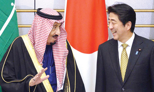 من أجل تحقيق السلام والاستقرار في المجتمع الدولي. وأيضاً، نود تبادل وجهات النظر حول القضايا الإقليمية في الشرق الأوسط مثل قضايا اليمن وسوريا، أغتنم هذه الفرصة أن أتطرق باختصار للزيارة الأخيرة لصاحب السمو الملكي الأمير محمد بن سلمان بن عبدالعزيز آل سعود ولي ولي العهد النائب الثاني لرئيس مجلس الوزراء وزير الدفاع إلى اليابان في سبتمبر 2016، وبالفعل، كانت هذه الزيارة هي فرصة رائعة لكل من المملكة العربية السعودية واليابان لترسيخ العلاقات الثنائية الوثيقة للتعاون بينهما في مختلف المجالات التي امتدت على مدى العقود الستة الماضية، ولانطلاق مرحلة التعاون القويللمملكة العربية السعودية من أجل خلق مجتمع حيوي واقتصاد مزدهر من خلال تنفيذ الرؤية السعودية 2030 وبرنامج التحول الوطني 2020، كما أننا نرغب في التعاون النشط مع المملكة العربية السعودية لتحقيق الأهداف التي خططت في الرؤية، ولهذا الغرض، قام كلا البلدين بتأسيس «المجموعة السعودية- اليابانية المشتركة لرؤية 2030» بمناسبة الزيارة التي قام بها ولي ولي العهد محمد بن سلمان إلى اليابان.