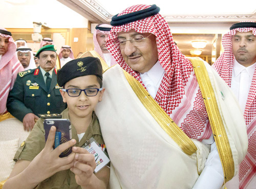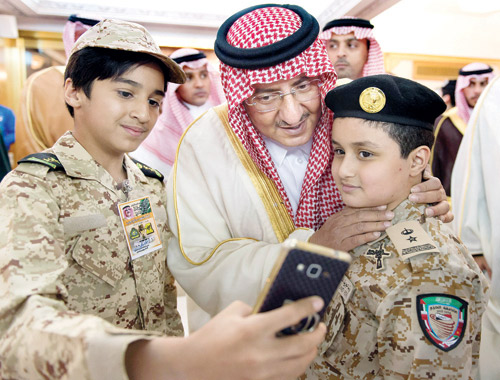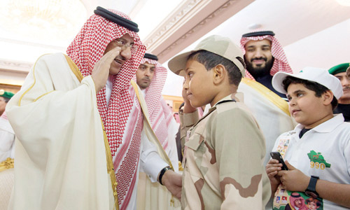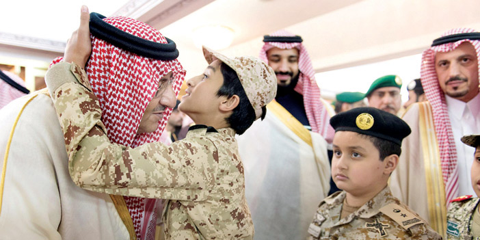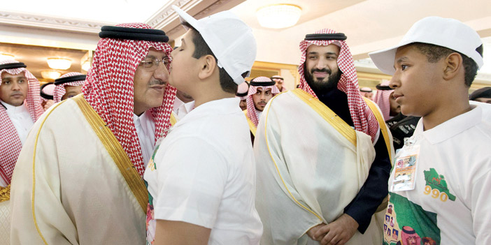 نائب خادم الحرمين مستقبلاً أبناء شهداء الواجب خلال رعايته المباراة النهائية في كرة القدم على كأس سموه بحضور ولي ولي العهد