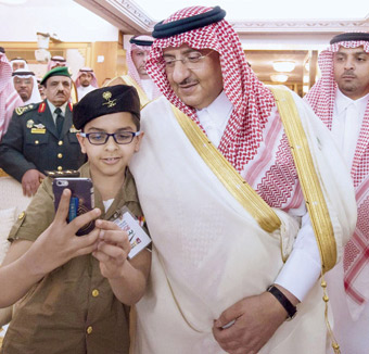 يقبل رجل الأمن الأول، وقاهر الإرهاب، الأمير محمد بن نايف ببشاشة وقلب مفتوح نحو أبنائه، ويتفاعل معهم، ويشاطرهم همومهم الرياضية، وقبلها يطبع على جبين الوطن قبلة وفاء باحتضانه أبناء شهداء الواجب.. يستقبلهم ويداعبهم.. يحتضنهم، ويلتقط الصور معهم في منظر يعبّر عن عمق التقدير لرجال ذادوا بأجسادهم وأرواحهم عن حمى الوطن.. وسط متابعة حانية من ولي ولي العهد وسمو أمير الرياض..