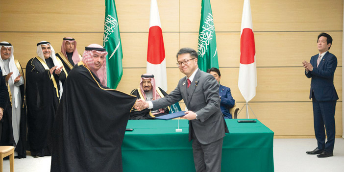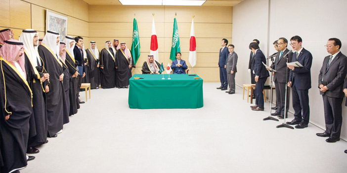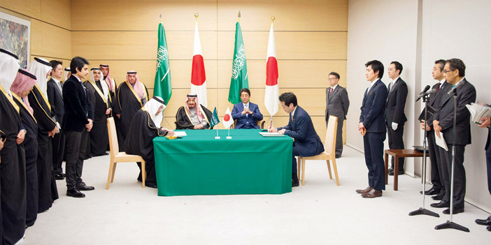 شهد خادم الحرمين الشريفين الملك سلمان بن عبدالعزيز آل سعود - حفظه الله - ودولة رئيس وزراء اليابان شينزو آبي أمس في مقر رئاسة وزراء اليابان بالعاصمة طوكيو مراسم التوقيع على مذكرات وبرنامج تعاون بين حكومتَيْ المملكة العربية السعودية واليابان.
