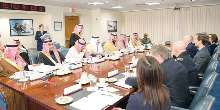 عقد صاحب السمو الملكي الأمير محمد ابن سلمان بن عبدالعزيز ولي ولي العهد النائب الثاني لرئيس مجلس الوزراء وزير الدفاع اجتماعا مع وزير الدفاع الأمريكي جيمس ماتيس في مقر وزارة الدفاع الأمريكية (البنتاغون).