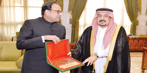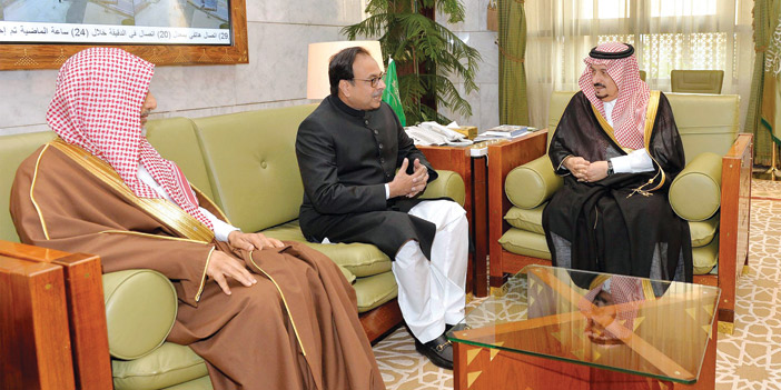 من جانب آخر استقبل صاحب السمو الملكي الأمير فيصل بن بندر بن عبدالعزيز أمير منطقة الرياض بمكتبه في قصر الحكم أمس معالي المدعي العام بجمهورية باكستان الإسلامية اشتر أوصاف علي والوفد المرافق له. وفي بداية الاستقبال رحب سموه بالجميع، متمنياً لهم طيب الإقامة بالمملكة. وجرى خلال اللقاء تبادل الأحاديث الودية، ومناقشة عدد من الموضوعات. حضر الاستقبال معالي رئيس هيئة التحقيق والادعاء العام الشيخ محمد بن فهد آل عبدالله.