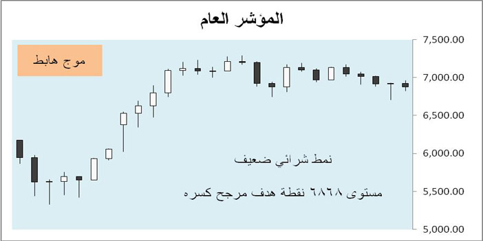 افتتح المؤشر العام الأسبوع الماضي على صعود وصلت ذروته إلى مستوى 6964 نقطة وانتهى الأسبوع تحت الحاجز النفسي 7000 نقطة للأسبوع الثالث وأغلق بنمط بيعي متوسط، ويأتي هذا الضعف كونه في مسار هابط على مستوى الحركة الأسبوعية. وكان أكبر الضاغطين على سوق الأسهم سهم الراجحي الذي قدم أسوأ أداء فني له منذ بداية العام الحالي نتيجة تعرضه لبيوع كبيرة من كبار ملاكه وهو أمر يبعث على القلق للمتعاملين.