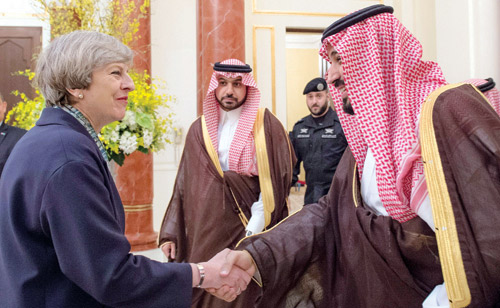 التقى صاحب السمو الملكي الأمير محمد بن سلمان بن عبدالعزيز ولي ولي العهد النائب الثاني لرئيس مجلس الوزراء وزير الدفاع في الرياض مساء أمس دولة رئيسة وزراء بريطانيا تيريزا ماي.