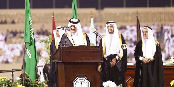 وأضاف: يسعدني أن أتقدم بخالص الشكر والامتنان لكم يا صاحب السمو أن منحتم حفلنا هذا شرف حضوركم الكريم؛ لتؤكدوا بذلك حرصكم المستمر على مشاركة أبنائكم فرحتهم وتتويج جهودهم، ودعمكم المتواصل أنشطة الجامعة ومناسباتها، وتقديركم لدورها المتميز في خدمة الوطن والمواطن.