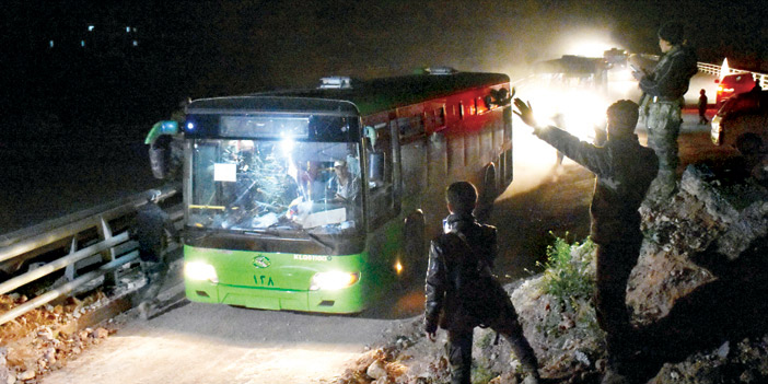 واستأنفت الحافلات التي تقل السكان الذين تم إجلاؤهم من أربع بلدات سورية محاصرة في وقت لاحق من مساء أمس السبت بعد توقف استمر ساعات طويلة إثر تفجير دموي استهدف أهالي الفوعة وكفريا أثناء وجودهم غرب حلب وفق ما أفاد المرصد السوري لحقوق الإِنسان. وقال مدير المرصد رامي عبد الرحمن لفرانس برس انه بعد طول انتظار انطلقت خمس حافلات من كل من القافلتين اللتين تقلان آلاف الأشخاص ممن تم إجلاؤهم من بلدتي الفوعة وكفريا في ادلب (شمال غرب) وبلدتي مضايا والزبداني قرب دمشق. وكانت حوالي 75 حافلة و20 سيارة إسعاف تقل الآلاف من أهالي الفوعة وكفريا تنتظر منذ أكثر من 35 ساعة في منطقة الراشدين بانتظار السماح لها بإكمال طريقها إلى مدينة حلب. وجرى الجمعة إجلاء 5000 شخص بينهم 1300 مقاتل موال للنظام من الفوعة وكفريا و2200 ضمنهم نحو 400 مقاتل معارض من بلدتي مضايا والزبداني قرب دمشق، في إطار اتفاق بين الحكومة السورية والفصائل المعارضة برعاية إيران وقطر. ميدانياً وصلت قوات سوريا الديمقراطية التي تتألف من قوات كردية وعربية إلى ضواحي مدينة الطبقة الواقعة تحت سيطرة تنظيم داعش في شمال سوريا، حسب ما أعلن المرصد السوري لحقوق الإِنسان أمس السبت.