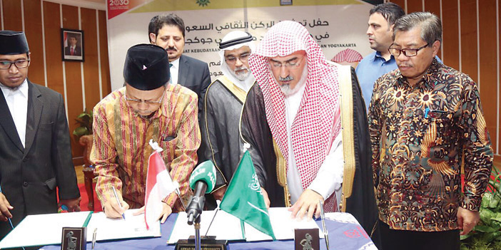 وبناءً على موافقة سامية كريمة من خادم الحرمين الشريفين الملك سلمان بن عبدالعزيز آل سعود، توجه مدير الجامعة عضو هيئة كبار العلماء الأستاذ الدكتور سليمان بن عبدالله أبا الخيل، ووفد من مسؤولي الجامعة، إلى إندونيسيا لإطلاق مبادرات الجامعة وبرامجها، حيث التقى نائب رئيس الجمهورية الإندونيسية ومحافظ سومطرا الشمالية وحاكم ميدان، كما زار جامعة المحمدية في ملانق ووقع عدداً من الاتفاقيات ومذكرات التعاون مع الجمعية المحمدية، وجامعة أحمد دحلان، معلناً عن دعم الركن الثقافي السعودي بمكتبة إلكترونية تضم عشرين ألف كتاب، كما افتتح فرع معهد العلوم الإسلامية والعربية في سورابايا. ووجه بإنشاء أول مكتبة عربية بها وقبول الطلاب المتقدمين. كما دشن الركن الثقافي السعودي في جامعة أحمد دحلان بجوكجاكرتا الإندونيسية. ورعى حفل تخريج ثلاث دفعات من معهد الملك عبدالله للدراسات الإسلامية والعربية في باندا آتشيه. والتقى مديري جامعات مكسر، كما رعى حفل تكريم الفائزين بمسابقات الملتقى الثقافي الثالث، كذلك رعى حفل تخريج ثلاث دفعات من معهد العلوم الإسلامية والعربية بإندونيسيا، ودشن برامج ووحدات بالمعهد وعمادة شؤون الخارج، وكذلك مراكز وبرامج للتعليم عن بُعد، وزار مجلس دار العلماء.