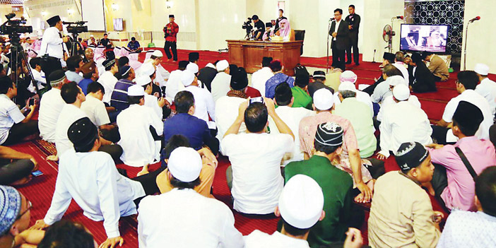 وفي ختام أعمال الجامعة في إندونيسيا ألقى الدكتور أبا الخيل كلمة توجيهية أمام المصلين في جامع الاستقلال بجاكرتا بعد أداء صلاة الجمعة الماضية، بحضور سفير خادم الحرمين الشريفين الأستاذ أسامة الشعيبي، وعدد من العلماء الإندونيسيين، أكد معاليه خلالها أن الدين الإسلامي دين عظيم يسهم في إخراج الناس من الظلمات إلى النور، ويظهر الحق والعدل والبر، ويدعو الناس إلى التعاون فيما بينهم، وأنه يجب على المسلمين في مختلف بقاع الأرض التمسك بالدين الإسلامي العظيم الذي يقي المسلم في هذا الزمن من المخاطر والشرور والتطرف والإرهاب.