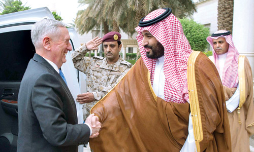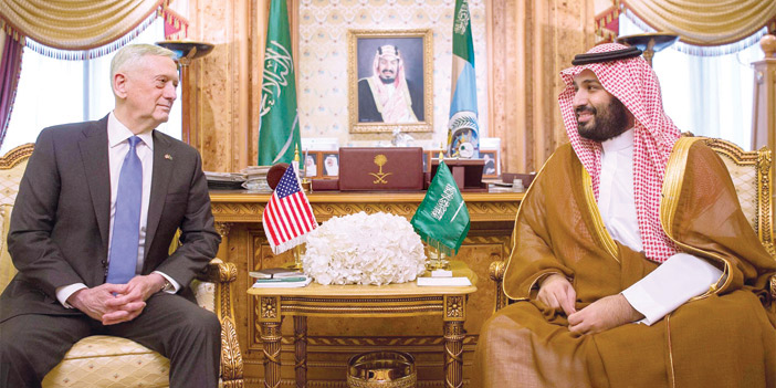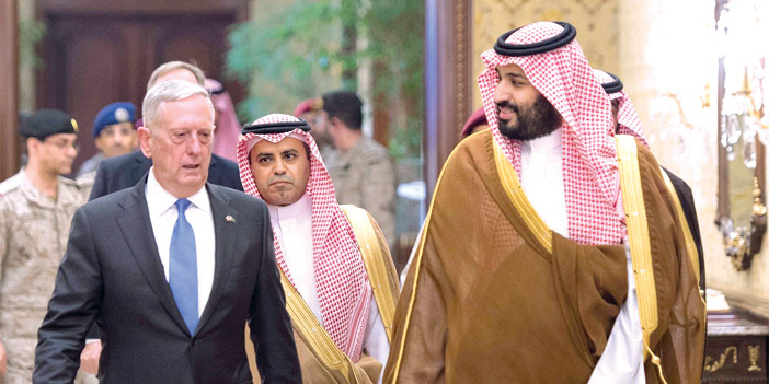 اجتمع صاحب السمو الملكي الأمير محمد بن سلمان بن عبدالعزيز ولي ولي العهد النائب الثاني لرئيس مجلس الوزراء وزير الدفاع في مكتبه بالرياض أمس مع معالي وزير الدفاع الأمريكي جيمس ماتيس.