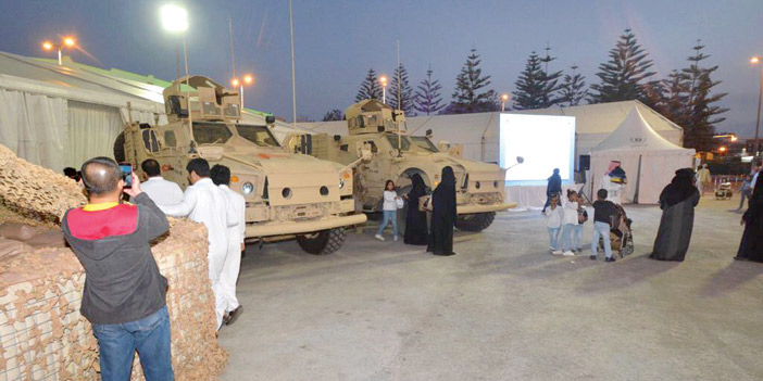 واهتم الزوار بالاطلاع على محتويات أركات المعرض ومحتوياته ودور كل الأبطال في عاصفة الحزم وإعادة الأمل، واطلعوا في ركن القوات البرية على طائرات الأباتشي والبلاك هوك وطيران القوات البرية، وآلية عمل تلك القوات وتجهيزها وتسليحها وآلية استخدام الصواريخ والرؤية في الليل، وشاهدوا في ركن الإدارة العامة للأسلحة والمدخرات الأسلحة التراثية والبنادق والذخائر، بتاريخها وتطورها واستخدامها والمالك الأساسي لها، واستمعوا لمعلومات في ركن القوات البحرية عن الفرقاطة السعودية ومجموعه السفن الصاروخية وقاذفات الألغام ومشبه الطيران والسوبر بومة والمشاة البحرية بكل تسليحها والرشاشات والأسلحة الحربية والصواريخ، وفي القوات الخاصة عن تجهيزات تلك القوات والضفادع البشرية وسترات المضادة للرصاص وتجهيزات القناص وبدلة الاقتحام.
