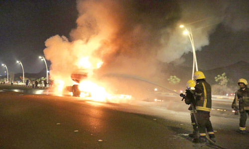 سيطرت فرق الدفاع المدني في مكة المكرمة على حريق اندلع في ناقلة بترولية على طريق مكة - جدة السريع. وأوضح المتحدث الرسمي للإدارة العامة للدفاع المدني بمكة المكرمة الرائد نايف الشريف أن بلاغا ورد في تمام الساعة الواحدة من صباح أمس الجمعة يفيد باشتعال النار في ناقلة مواد بترولية سعة 33 طناً في طريق مكة - جدة السريع، نتيجة حادث مروري وحدوث تسرب للمادة البترولية المشتعلة، أدى إلى اندلاع النار في ثلاث سيارات أخرى وتمت السيطرة على الحادث وإخماده والعمل والحيلولة دون انفجار الصهريج نظراً لارتفاع درجة حرارته بالقيام بعملية التبريد اللازمة. وبين أنه تم تأمين الخطورة على امتداد الطريق السريع واستحداث مسارات آمنة لمرور السيارات بالتنسيق مع الجهات الأمنية، مشيراً إلى أنه نجم عن الحادث وفاة شخص بداخل إحدى السيارات المحترقة، وتم تسليم الموقع والحالة للجهات المختصة لاستكمال الإجراءات اللازمة.