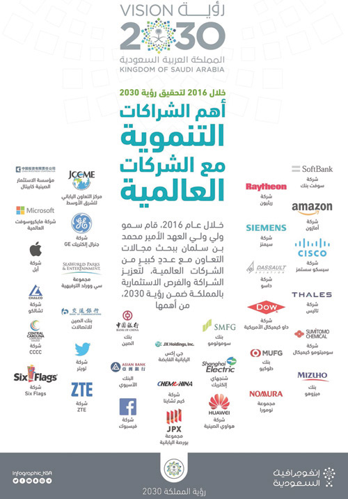 شهدت الأشهر الماضية ومنذ انطلاق رؤية المملكة 2030 رسميا، حراكا كبيرا من قبل صاحب السمو الملكي الأمير محمد بن سلمان بن عبد العزيز ولي ولي العهد النائب الثاني لرئيس مجلس الوزراء وزير الدفاع، من خلال عقد لقاءات مع رؤساء كبار الشركات العالمية العاملة في مجالات مختلفة، في خطوة رسمت مسار الاستثمار الجديد في البلاد وفق رؤية المملكة 2030.