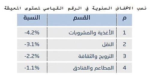 فعلى المستوى السنوي، شهد قسم الأغذية والمشروبات تراجعا بنسبة بلغت حوالي (-4.2%)، وهي نسبة مرتفعة وتؤكد تحسن المستوى العام للأسعار لكي يتخلص من فورة تضخم جامح نالته خلال فترة طويلة تناهز ثماني سنوات (2008-2016).