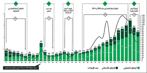 كما يجب التوضيح أن تعاظم الدخل في السنوات العشر الأخيرة وارتفاع سعر برميل البترول أدَّى إلى تكوين مخزون احتياطي مالي ممتاز وغير مسبوق، كما أدَّى إلى ارتفاع شهية الصرف على المشروعات الرأسمالية وبنود التشغيل المرافقة لها، وقد يرى البعض أن هذا هو من ضمن دورة الأعمال الطبيعية، حيث يتم الاستثمار في البنية التحتية والمشروعات الرأسمالية، حين توافر النقد لضمان سير عجلة التنمية وتقدم النمو الاجتماعي والاقتصادي الصحيح، كما أن مرحلة ارتفاع الدخل سبقها انخفاضان كبيران في السابق في منتصف الثمانينات ثم خلال حرب الخليج ثم نهاية التسعينات، لذلك يتضح لدينا أن ما يجري هو جزء من الدورة الطبيعية للاقتصاد وأن الترشيد هو أمر ضروري للمرور من خلال هذه الفترة بسلام وبدون التعرض إلى مشاكل اقتصادية أكبر من انخفاض الدخل ذاته.