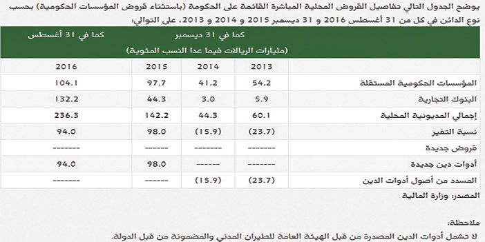 أطلق برنامج التحول الوطني للمساهمة في تحقيق رؤية المملكة العربية السعودية 2030 وإدراك التحديات التي تواجه الجهات الحكومية القائمة على القطاعات الاقتصادية والتنموية في سبيل تحقيقها. وأظهرت وثائق خطة الإصلاح الاقتصادي السعودية توقع وزارة المالية ارتفاع نسبة الدين العام إلى الناتج المحلي الإجمالي من 7.7 % إلى 30 % في 2020.