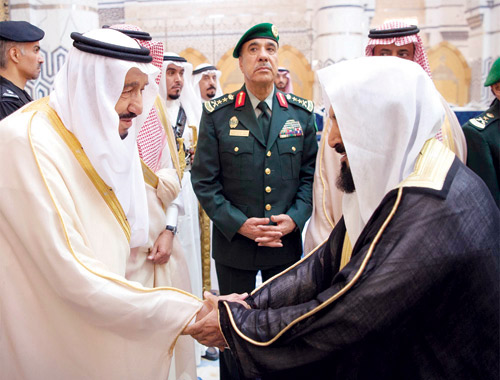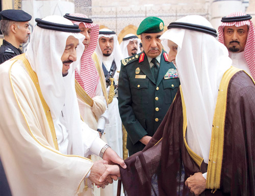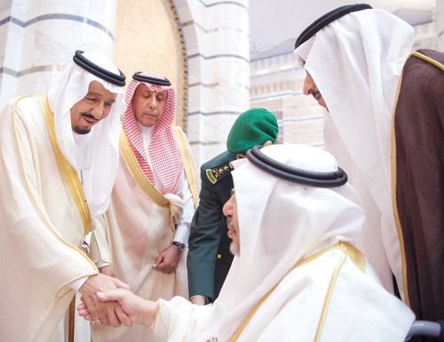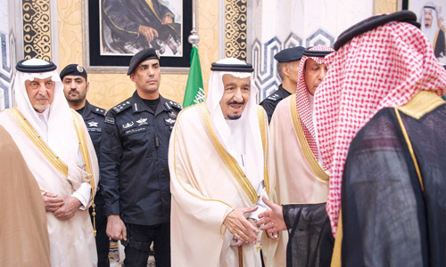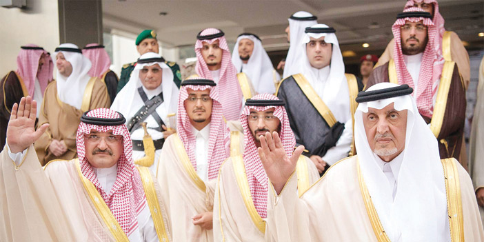 وفي صالة التشريفات بالمطار كان في استقبال خادم الحرمين الشريفين - أيده الله - صاحب السمو الملكي الأمير عبدالله بن خالد بن عبدالعزيز وصاحب السمو الملكي الأمير سعود بن عبدالمحسن بن عبدالعزيز المستشار الخاص لخادم الحرمين الشريفين وصاحب السمو الملكي الأمير منصور بن بندر بن عبدالعزيز وصاحب السمو الأمير خالد بن فهد بن محمد وصاحب السمو الأمير محمد بن فهد بن محمد وصاحب السمو الأمير الدكتور فيصل بن خالد بن تركي وكيل وزارة الحرس الوطني للقطاع الغربي، وصاحب السمو الملكي الأمير سعود العبدالله الفيصل وصاحب السمو الأمير متعب بن سعود بن سعد وصاحب السمو الأمير عبدالله بن فهد بن محمد وصاحب السمو الأمير نواف بن سعود بن سعد وصاحب السمو الأمير سعود بن سعد بن محمد وصاحب السمو الأمير فيصل بن سعد بن محمد وصاحب السمو الملكي الأمير نواف بن ناصر بن عبدالعزيز وصاحب السمو الأمير منصور بن خالد بن جلوي وصاحب السمو الأمير تركي بن عبدالله بن عبدالعزيز بن مساعد وصاحب السمو الملكي الأمير محمد بن عبدالله بن خالد بن عبدالعزيز وصاحب السمو الملكي الأمير نايف بن ممدوح بن عبدالعزيز وصاحب السمو الملكي الأمير بندر بن عبدالله بن خالد بن عبدالعزيز وصاحب السمو الملكي الأمير خالد بن عبدالله بن فيصل بن تركي بن عبدالعزيز وصاحب السمو الأمير فيصل بن محمد بن سعد وكيل إمارة منطقة مكة المكرمة المساعد للحقوق وصاحب السمو الأمير سعود بن عبدالله بن جلوي وكيل إمارة منطقة مكة المكرمة للشؤون الأمنية وصاحب السمو الأمير تركي بن عبدالله بن سعود وصاحب السمو الملكي الأمير فيصل بن نواف بن عبدالعزيز وصاحب السمو الملكي الأمير عبدالعزيز بن فيصل بن عبدالمجيد بن عبدالعزيز وصاحب السمو الملكي الأمير تركي بن فيصل بن عبدالمجيد بن عبدالعزيز وصاحب السمو الملكي الأمير فواز بن بندر بن عبدالعزيز وصاحب السمو الأمير بدر بن نواف بن سعود بن سعد وصاحب السمو الملكي الأمير تركي بن طلال بن ممدوح بن عبدالعزيز. وقد وصل في معية الملك المفدى كل من، صاحب السمو الأمير خالد بن فهد بن خالد، وصاحب السمو الملكي الأمير منصور بن سعود بن عبدالعزيز، وصاحب السمو الملكي الأمير طلال بن سعود بن عبدالعزيز، وصاحب السمو الأمير خالد بن سعد بن فهد، وصاحب السمو الملكي الأمير خالد بن بندر بن عبدالعزيز مستشار خادم الحرمين الشريفين، وصاحب السمو الملكي الأمير الدكتور منصور بن متب بن عبدالعزيز وزير الدولة عضو مجلس الوزراء مستشار خادم الحرمين الشريفين، وصاحب السمو الملكي الأمير متعب بن عبدالله بن عبدالعزيز وزير الحرس الوطني، وصاحب السمو الأمير فهد بن عبدالله بن عبدالعزيز بن مساعد، وصاحب السمو الأمير تركي بن عبدالله بن محمد مستشار خادم الحرمين الشريفين، وصاحب السمو الملكي الأمير سطام بن سعود بن عبدالعزيز، وصاحب السمو الملكي الأمير الدكتور عبدالعزيز بن سطام بن عبدالعزيز مستشار خادم الحرمين الشريفين، وصاحب السمو الملكي الأمير سعود بن سلمان بن عبدالعزيز، وصاحب السمو الملكي الأمير تركي بن سلمان بن عبدالعزيز، وصاحب السمو الملكي الأمير بندر بن سلمان بن عبدالعزيز، وصاحب السمو الملكي الأمير راكان بن سلمان بن عبدالعزيز. كما وصل في معية خادم الحرمين الشريفين ـ حفظه الله ـ معالي عضو هيئة كبار العلماء المستشار بالديوان الملكي الشيخ عبدالله بن سليمان المنيع، ومعالي عضو هيئة كبار العلماء المستشار بالديوان الملكي الشيخ الدكتور صالح بن عبدالله بن حميد، ومعالي عضو هيئة كبار العلماء المستشار بالديوان الملكي الشيخ الدكتور عبدالله بن محمد المطلق، ومعالي وزير الدولة عضو مجلس الوزراء الدكتور إبراهيم بن عبدالعزيز العساف، ومعالي رئيس المراسم الملكية الأستاذ خالد بن صالح العبّاد، ومعالي نائب السكرتير الخاص لخادم الحرمين الشريفين مساعد رئيس الديوان الملكي للشؤون التنفيذية الأستاذ فهد بن عبدالله العسكر، ومعالي المستشار في الديوان الملكي المشرف العام على مكتب سمو وزير