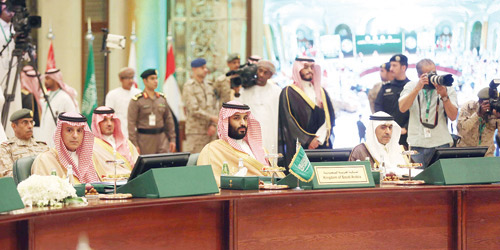 ووجه سموه التحية لجنود الواجب والشرف قواتنا المشتركة في التحالف العربي الداعم للشرعية في اليمن العزيز والواقفين على الحق دفاعاً عن خليجنا الواحد والمتطلع دائماً وأبدأ إلى مستقبل أفضل لشعوب المنطقة والعالم أجمع, متمنياً للجميع أن نصل في هذا الاجتماع لوضع السياسات اللازمة وتوحيد المواقف في مواجهة التهديدات السياسية والعسكرية والأمنية وذلك تحقيقاً لتوجيهات قادتنا نحو مزيد من التعاون والتوفيق والسداد.