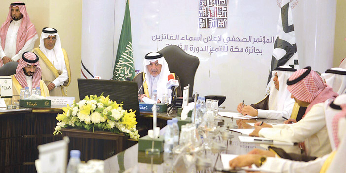 أعلن مستشار خادم الحرمين الشريفين أمير منطقة مكة المكرمة صاحب السمو الملكي الأمير خالد الفيصل أسماء الفائزين بجائزة مكة للتميز في دورتها الثامنة. وقال الأمير خالد الفيصل لدى إعلانه أسماء الفائزين بمقر الإمارة بجدة أمس الأحد: «أرفع أسمى آيات الشكر والتقدير لقائد هذه الأمة ملك هذه البلاد المتفاني في خدمة دينه ووطنه، سيدي خادم الحرمين الشريفين الملك سلمان بن عبدالعزيز -يحفظه الله-، الذي شجعنا بأسلوبه المتميز وطريقته المميزة على إدارة الأمور، وأن تكون في المستوى الإداري الذي نرضاه لهذه المنطقة وأهلها».