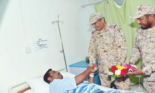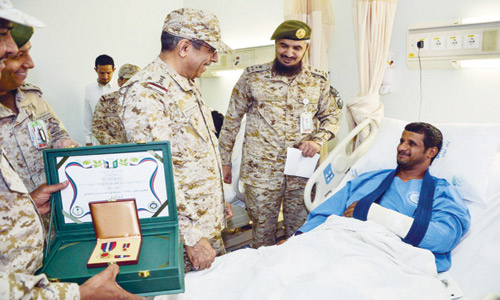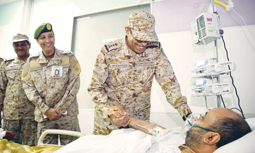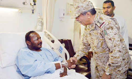 زار معالي رئيس هيئة الأركان العامة الفريق الأول الركن عبدالرحمن بن صالح البنيان يوم أمس، مصابي القوات المسلحة في عمليتي عاصفة الحزم وإعادة الأمل وقلّدهم الأنواط المستحقة لهم، وذلك بالمستشفى العسكري في مدينتي خميس مشيط وجازان.