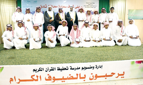 كرم مكتب التعليم بمحافظة ثادق 145 متفوقا ومتفوقة من جميع مدارس ثادق ومراكزها للمراحل الثلاث وذلك بحضور محافظ ثادق تركي الهزاني ومدير التعليم عبد الرحمن الماجد وعدد من رؤساء الدوائر الحكومية وقادة المدارس والطلاب. وقد بدئ الحفل بالتقديم لخالد الخالد وحمد الجديعي ثم القرآن الكريم، بعدها كلمة مدير تعليم ثادق عبد الرحمن الماجد هنأ فيها الطلاب المتفوقين وقدم شكره لكل من ساهم في نجاح الحفل وللداعمين ورعاة الحفل المشايخ محمد وخالد الماجد، بعدها كلمة المتفوقين ألقاها نيابة عنهم الطالب محمد الزهراني، ثم ألقى محافظ ثادق كلمة شكر فيها الرعاة ومدير التعليم ومنسوبي المدارس، مؤكدا ان هذا التكريم حافزا للجميع على بذل الجهد للتفوق مستقبلا. بعد ذلك تم تكريم 70 طالبا متفوقا من مختلف المراحل الدراسية سلمت لهم الدروع وشهادات التقدير وفي المقابل تم تكريم 75 طالبة من القسم النسائي.. وفي الختام تم تكريم رعاة الحفل تسلم التكريم خالد الماجد وكذلك دروع للإعلاميين وقادة المدارس المتميزة ومحافظ ثادق.