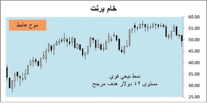 أغلق خام برنت الأسبوع الماضي على نمط بيعي قوي في مسار هابط على مستوى الحركة الأسبوعية مع استمرار ضعف الدولار وهو أول أسبوع يغلق فيه تحت حاجز الخمسين دولار منذ بداية السنة الحالية وهو مؤشر كبير على ضعف الطلب العالمي رغم الاتفاق الأخير بين المنتجين من داخل وخارج أوبك ويرجح الأسبوع المقبل أن يواصل المزيد من الهبوط ليختبر مستوى الدعم 42 دولاراً بنمط بيعي أقوى على حركته الأسبوعية.