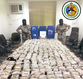 كشف ذلك المتحدث الرسمي لحرس الحدود العقيد البحري الركن ساهر بن محمد الحربي وقال انه استمرار لجهود رجال حرس الحدود في متابعتهم ورصدهم لمخططات الشبكات الإجرامية التي تستهدف المملكة وأبناءها بالمخدرات ومحاولات عناصرها لتهريب سمومهما عبر حدود المملكة البرية والبحرية، فقد رصدت أنظمة المراقبة الإلكترونية بحرس الحدود أمس الأول قاربا عند تجاوزه حدود المملكة البحرية عبر مسؤوليات قطاع ضباء بمنطقة تبوك أثناء محاولته تهريب كمية كبيرة من المواد المخدرة قادماً من السواحل المصرية. وعلى الفور تم اعتراض القارب وإطلاق النار عليه حتى تمت محاصرته وإيقافه وأثناء ذلك قاما بإلقاء عدد من البراميل البلاستيكية التي كانت على متن القارب في البحر، وبحمد الله تم القبض عليهما واعترافهما بتهريب المخدرات وإلقاء البراميل التي كانت محملة بالمخدرات في البحر وكانا شخصين مصريي الجنسية.. كما تمت المباشرة في استخراج البراميل من البحر والتي وجد البعض منها مربوطا بحبل وموصلا بالمخطاف واتضح بعد انتشالها وتفتيشها احتوائها على ما مجموعه (854600) ثمانمائة وأربعة وخمسون ألفاً وستمائة قرص إمفيتامين (كبتاجون)، ولازالت عمليات البحث مستمرة حتى إعداد هذا البيان.