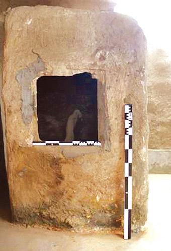 اهتم مالك البيت بالضيوف حيث يوجد في الدور الأرضي مجلس للرجال أبعاده (3.70م×3.80م)، به عمود ارتفاعه (2م) يزين واجهاته أفريز جصي مزخرف, ويزين الأبواب الخشبية عدد من الزخارف الهندسية. في وسط البيت يوجد فناء سماوي يسمى الحوي يرتكز على أربعة أعمدة ارتفاع كل منها (2.5م) وفي أعلاها تاج ذو حُطتين, تبلغ مساحة الفناء (1.5م×2م)، يحيط بالفناء السقائف الأربعة تباينت في أطوالها, ويوجد صفة للنوم يتوسطها عمود أسطواني ارتفاعه (2م), ويوجد في أعلى العمود تاج ذو حُطتين.
