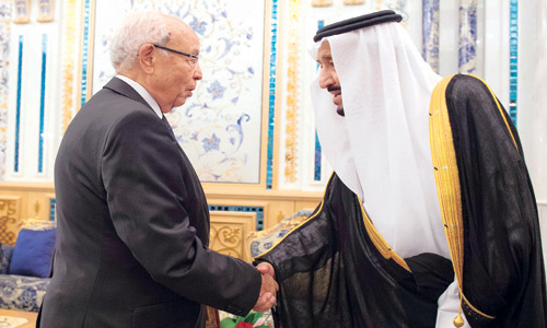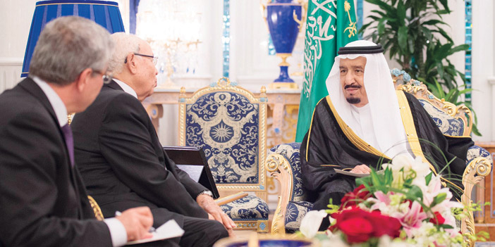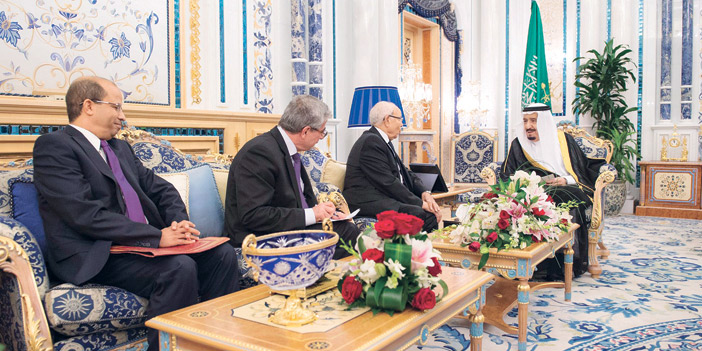 تسلم خادم الحرمين الشريفين الملك سلمان بن عبدالعزيز آل سعود ـ حفظه الله ـ رسالة من فخامة الرئيس الباجي قائد السبسي رئيس الجمهورية التونسية. وسلم الرسالة لخادم الحرمين الشريفين ـ رعاه الله ـ معالي الوزير الممثل الشخصي لفخامة الرئيس التونسي الأزهر القروي الشابي، خلال استقبال الملك المفدى له في مكتبه بقصر السلام بجدة أمس. ونقل معاليه لخادم الحرمين الشريفين خلال الاستقبال تحيات فخامة الرئيس التونسي، فيما أبدى ـ أيده الله ـ تحياته لفخامته. حضر الاستقبال، معالي وزير الدولة عضو مجلس الوزراء الدكتور إبراهيم بن عبدالعزيز العساف، ومعالي وزير الدولة للشؤون الخارجية الدكتور نزار بن عبيد مدني، وسفير تونس لدى المملكة لطفي بن قايد.