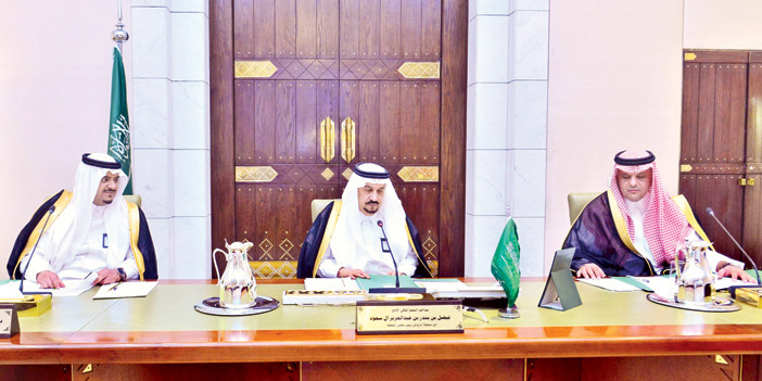رأس صاحب السمو الملكي الأمير فيصل بن بندر بن عبد العزيز أمير منطقة الرياض رئيس مجلس المنطقة في مكتب سموه بقصر الحكم أمس ، جلسة المجلس الأولى لدورته الثالثة لعام 1437 - 1438هـ بحضور صاحب السمو الملكي الأمير محمد بن عبد الرحمن بن عبد العزيز نائب أمير منطقة الرياض نائب رئيس مجلس المنطقة.