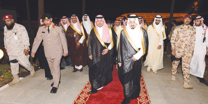 كما كان في استقبال سمو نائب أمير منطقة عسير لدى وصوله قائد المنطقة الجنوبية اللواء ركن عبدالله القفاري ومعالي مدير جامعة الملك خالد الدكتور فالح بن رجاء الله السلمي ومعالي مدير جامعة بيشة الدكتور أحمد بن حامد نقادي وسعادة وكيل إمارة منطقة عسير سليمان بن محمد الجريش ووكيل الإمارة المساعد للشؤون الأمنية مغدي الوادعي ووكيل الإمارة المساعد للشؤون التنموية الدكتور عبدالرحمن آل حامد ومحافظي المحافظات ومديري الإدارات الحكومية والجهات الأمنية بالمنطقة وجمع غفير من الأعيان ومشايخ القبائل.