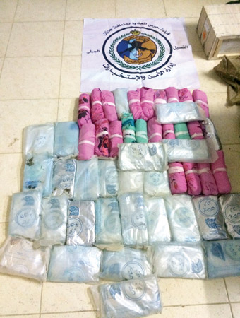 أعلن المتحدث الرسمي لحرس الحدود العقيد البحري الركن ساهر بن محمد الحربي أن رجال حرس الحدود بالمناطق الجنوبية (جازان ونجران وعسير) تمكنوا -بتوفيق الله- خلال اليومين الماضيين من إحباط عدة محاولات لتهريب كميات من مادة الحشيش المخدر، حيث تم رصد أشخاص قادمين من الأراضي اليمنية حاولوا التسلل للمملكة عبر المناطق الجنوبية (جازان ونجران وعسير) لتنفيذ نواياهم في تهريب المواد المخدرة والتي تستهدف النيل من أبنائنا، مما حتم التعامل معهم بما يقتضيه الموقف بكل حزم وقوة وأسفر عن ذلك القبض على عدد (9) تسعة أشخاص من الجنسية الأثيوبية و(4) أشخاص سعوديي الجنسية. وكان مجموع ما تم ضبطه بحوزتهم (591.65) خمسمائة وواحد وتسعون كيلوجرام وخمسة وستون جراماً من مادة الحشيش المخدر، كما تم المباشرة في استكمال كافة الإجراءات الأمنية حيال الأشخاص والمضبوطات بالتعاون مع الجهات الأمنية الأخرى.