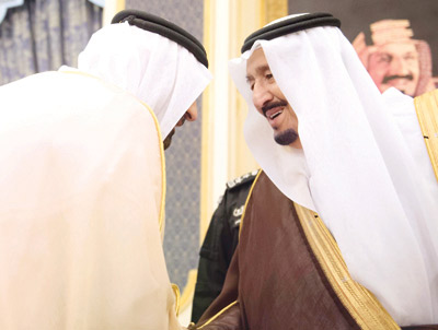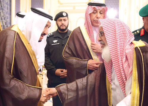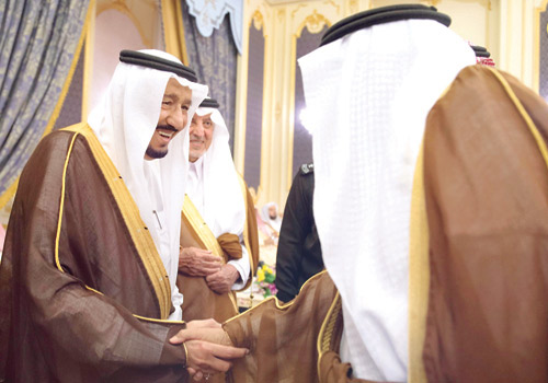 استقبل خادم الحرمين الشريفين الملك سلمان بن عبد العزيز آل سعود - حفظه الله - في قصر السلام أمس أصحاب السمو الأمراء، وأصحاب الفضيلة العلماء، وجموعاً من المواطنين الذين قدموا للسلام عليه - رعاه الله -.