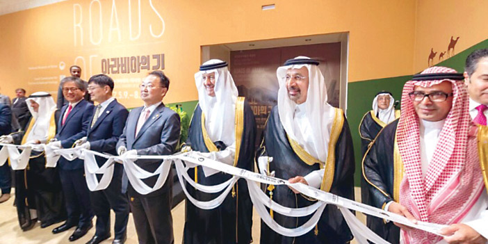 وقد قص سموه ومعالي نائب رئيس الوزراء الكوري شريط افتتاح المعرض، وتجولا وكبار الضيوف في المعرض الذي يحوي (466) قطعة أثرية نادرة تعرّف بالبعد الحضاري للمملكة وإرثها الثقافي، وما شهدته أرضها من تداول حضاري عبر الحقب التاريخية المختلفة.