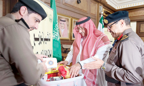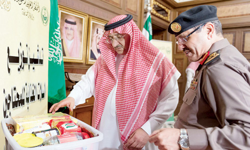 وأضاف سموه قائلاً: :» هذه الحملة صدقة لشهداء الواجب عن أنفسهم، ولن ندع أحدا يتصدق عنهم بل هم من يتبرعون ويتصدقون عن أنفسهم». وكان سموه قد استمع خلال التدشين لشرح مفصل عن الحملة قدمه وكيل وزارة الداخلية للشؤون العسكرية المشرف العام على الحملة اللواء إبراهيم بن محمد المحرج بيَّن فيه أن الحملة سيَّرت 68 شاحنة تمثل قافلة توزيع صدقات عن 278 شهيد واجب، بواقع 20 سلة عن كل شهيد، بإجمالي 5560 سلة غذائية.