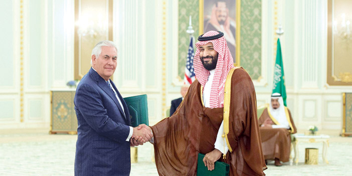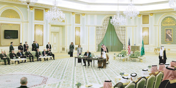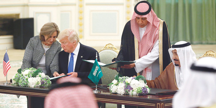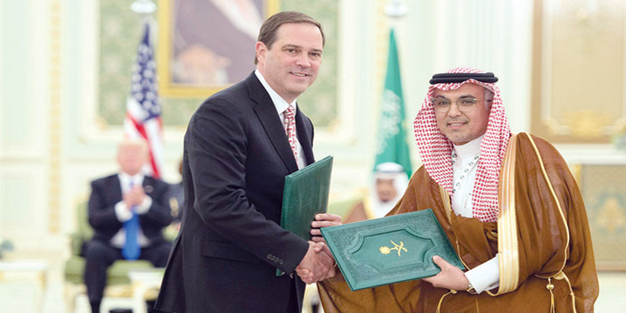 وقع خادم الحرمين الشريفين الملك سلمان بن عبد العزيز آل سعود - حفظه الله - وفخامة الرئيس دونالد ترمب رئيس الولايات المتحدة الأمريكية، أمس في قصر اليمامة بالرياض على إعلان الرؤية الاستراتيجية المشتركة بين المملكة العربية السعودية والولايات المتحدة الأمريكية. بعد ذلك وبحضور خادم الحرمين الشريفين وفخامة الرئيس الأمريكي، جرت مراسم تبادل عدد من الاتفاقيات والفرص الاستثمارية بين المملكة وأمريكا التي تفوق قيمتها الإجمالية مئتين وثمانين مليار دولار، ستسهم في نقل المعرفة وتوطين التقنية وبناء استثمارات وصناعات واعدة، ستوفر مئات الآلاف من فرص العمل في كلا البلدين. فقد تبادل صاحب السمو الملكي الأمير محمد بن سلمان بن عبد العزيز ولي ولي العهد النائب الثاني لرئيس مجلس الوزراء وزير الدفاع، ومعالي وزير الخارجية الأمريكي ريكس تليرسون مذكرتين بين حكومة المملكة العربية السعودية ممثلة في وزارة الدفاع وحكومة الولايات المتحدة الأمريكية ممثلة في وزارة الدفاع والتي تم توقعيهما من وزيري الدفاع في البلدين لتحديث وتطوير القوات المسلحة السعودية بالقدرات الدفاعية.