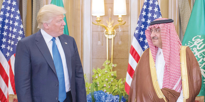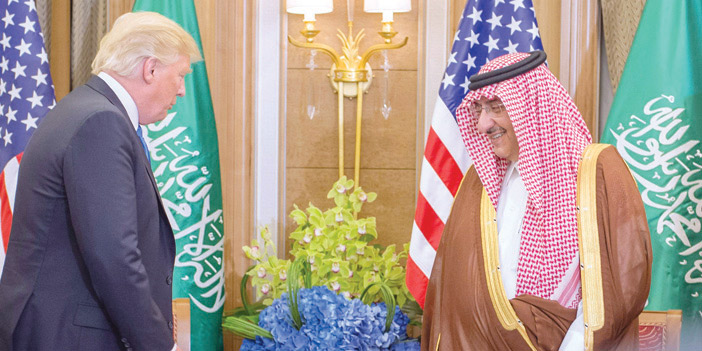 بحث صاحب السمو الملكي الأمير محمد بن نايف بن عبد العزيز ولي العهد نائب رئيس مجلس الوزراء وزير الداخلية -حفظه الله- مع فخامة الرئيس دونالد جي ترمب رئيس الولايات المتحدة الأمريكية، العلاقات الثنائية المميزة التي تربط بين البلدين الصديقين وتنامي هذه العلاقات لما فيه صالح الشعبين السعودي والأمريكي.