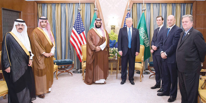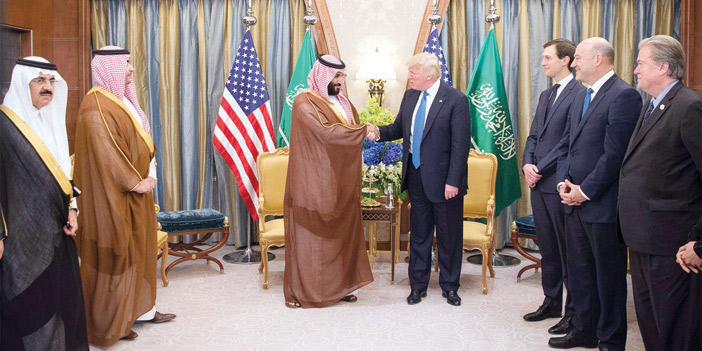 استقبل فخامة الرئيس دونالد ترمب رئيس الولايات المتحدة الأمريكية في مقر إقامته في العاصمة الرياض صاحب السمو الملكي الأمير محمد بن سلمان بن عبد العزيز ولي ولي العهد النائب الثاني لرئيس مجلس الوزراء وزير الدفاع.