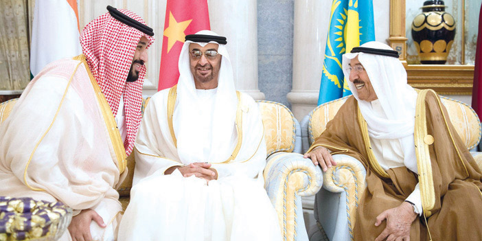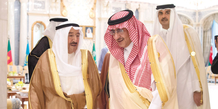 عقد أصحاب الجلالة والسمو قادة ورؤساء وفود دول مجلس التعاون لدول الخليج العربية ، أمس، اللقاء التشاوري السابع عشر، وذلك في مركز الملك عبد العزيز الدولي للمؤتمرات بالرياض. ورأس اللقاء صاحب السمو الملكي الأمير محمد بن نايف بن عبدالعزيز ولي العهد نائب رئيس مجلس الوزراء وزير الداخلية. وقبيل اللقاء التقطت الصور التذكارية بهذه المناسبة . ويضم الوفد الرسمي للمملكة ، صاحب السمو الملكي الأمير محمد بن سلمان بن عبدالعزيز ولي ولي العهد النائب الثاني لرئيس مجلس الوزراء وزير الدفاع، وصاحب السمو الملكي الأمير خالد بن سلمان بن عبدالعزيز سفير خادم الحرمين الشريفين لدى الولايات المتحدة الأمريكية، ومعالي وزير الشؤون الإسلامية والدعوة والإرشاد الشيخ صالح بن عبدالعزيز آل الشيخ، ومعالي وزير الدولة عضو مجلس الوزراء الدكتور مساعد بن محمد العيبان، ومعالي وزير الخارجية الأستاذ عادل بن أحمد الجبير.