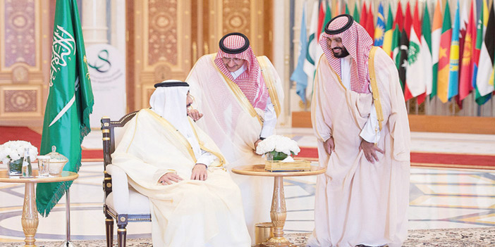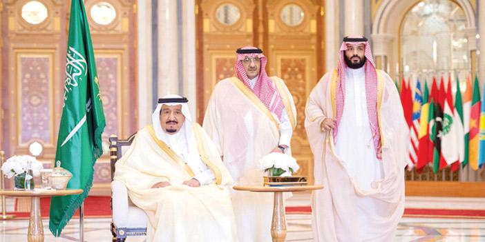 ويضم الوفد الرسمي صاحب السمو الملكي الأمير محمد بن نايف بن عبدالعزيز ولي العهد نائب رئيس مجلس الوزراء وزير الداخلية، وصاحب السمو الملكي الأمير محمد بن سلمان بن عبدالعزيز ولي ولي العهد النائب الثاني لرئيس مجلس الوزراء وزير الدفاع، وصاحب السمو الملكي الأمير خالد بن سلمان بن عبدالعزيز سفير خادم الحرمين الشريفين لدى الولايات المتحدة الأمريكية، ومعالي وزيـر الشؤون الإسلامية والدعوة والإرشاد الشيخ صالح بن عبدالعزيز آل الشيخ، ومعالي وزير الدولة عضو مجلس الوزراء الدكتور مساعد بن محمد العيبان، ومعالي وزير الخارجية الأستاذ عادل بن أحمد الجبير.