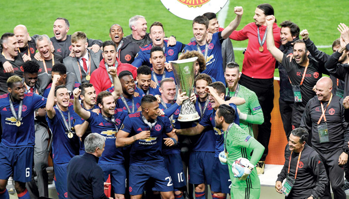 أحرز مانشستر يونايتد الانكليزي لقبه الأول في مسابقة الدوري الأوروبي «يوروبا ليغ» بفوزه امس على أياكس أمستردام الهولندي 2-صفر في النهائي على ملعب «فراندز أرينا» في سولنا. وسجل لاعبا الوسط الفرنسي بول بوغبا (18) والارميني هنريك مخيتاريان (48) الهدفين. وبإحرازه اللقب، ضمن يونايتد العودة الى مسابقة دوري أبطال اوروبا، بعد اكتفائه بالمركز السادس غير المؤهل في الدوري المحلي. من جهته فشل أياكس، أحد أبرز فرق القارة العجوز خلال أيام الراحل يوهان كرويف، في استعادة أمجاده القارية، إذ أحرز لقب المسابقة القارية الأولى أعوام 1971 و1972 و1973 ثم 1995، كما توج بلقب كأس الكؤوس الاوروبية 1987 وكأس الاتحاد الأوروبي (يوروبا ليغ حاليا) 1992. وخاض لاعبو يونايتد النهائي بعد الهجوم الانتحاري الذي تعرضت له مدينتهم ليل الاثنين وأودى بحياة 22 شخصا وإصابة 59 آخرين، خلال حفل موسيقي للمغنية الأميركية أريانا غراندي. ووقف جمهورا ولاعبو الفريقين دقيقة صمت تكريما للضحايا، كما ارتدى لاعبو يونايتد والحكام شارات سوداء حدادا.