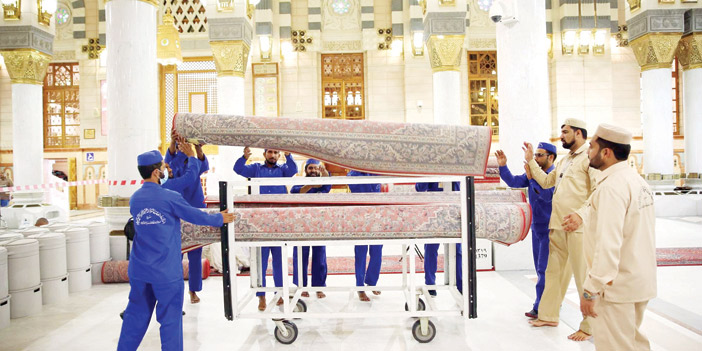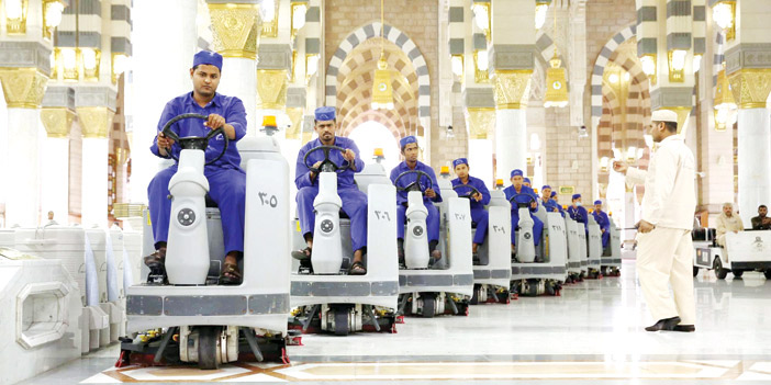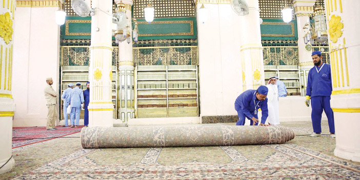 وأوضح مدير إدارة النظافة والسجاد بوكالة الرئاسة العامة لشؤون المسجد النبوي سعود بن عبدالرزاق العوفي, أن الإدارة تقدم العديد من الخدمات التي تشمل كنس الروضة الشريفة وتطييبها بمعطرات الورد بمعدل 6 مرات يومياً لتجهيزها للصائمين والزوار، إضافة إلى غسل الأرضيات داخل الحرم بمعدل 3 مرات يومياً باستخدام 32 مكينة غسيل مجهزة بمواد النظافة، وكذلك كنس سجاد المسجد النبوي بمعدل 3 مرات يومياً باستخدام أكثر من 200 مكينة للكنس، كما يتم تشغيل 1250 عاملاً للنظافة في أقسام الرجال و200 عاملة في أقسام النساء بشكل يومي.