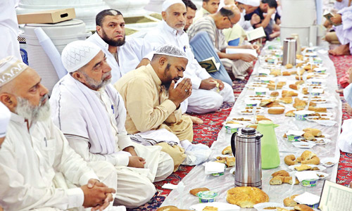 ويتشارك العديد من أهالي المدينة المنورة في تجهيز موائد الإفطار بالأطعمة والمشروبات, وترتيبها وتهيئتها وإعدادها لتفطير مئات الآلاف من الزائرين والزائرات؛ لتتشكّل صورة مشرقة من صور الترابط والتعاضد بين المسلمين الذين يفدون إلى طيبة الطيبة من مختلف الدول لأداء الصلاة في المسجد النبوي, والتشرّف بالسلام على رسول الله -صلى الله عليه وسلم-، وعلى صاحبيه -رضوان الله عليهما-, وابتغاء الأجر والمثوبة والغفران من الباري -عز وجلّ- في هذا الشهر الفضيل. ويقوم العاملون في المسجد النبوي بتهيئة المرافق والساحات والإمكانات كافة للقائمين على تقديم سفر الإفطار وتحديد أماكنها ومواقعها داخل المسجد وخارجه؛ إذ يتم استقبال موائد وسفر الصائمين بعد صلاة العصر عبر أبواب محددة من جهات المسجد النبوي الأربع لدخول الموائد التي تحوي أصنافًا محددة من الأطعمة، تشمل التمر والقهوة واللبن الزبادي والخبز. ويشرف مراقبون على عملية دخول هذه الموائد عبر أبواب المسجد النبوي، بينما يتم وضع الأطعمة بعد فرش السفر داخل المسجد حتى وقت أذان المغرب، في حين يتم قبل إقامة الصلاة رفع آلاف السفر وما تحويه من بقايا الطعام بطريقة سريعة ومنظمة, بالتعاون بين العاملين والمشرفين بالمسجد النبوي وأصحاب السفر. وحددت وكالة الرئاسة العامة لشؤون المسجد النبوي اشتراطات محددة لتقديم وجبات الإفطار للصائمين في المسجد النبوي وساحاته المحيطة، تشمل إحضار فرش مناسب، يتسع للمائدة ومن يجلس حولها، وأن تكون السفر من النوع السميك القوي الذي لا يتمزّق عند رفعه من الأرض، وعدم إحضار أي نوع من السوائل أيًّا كانت ما عدا اللبن والماء والمشروبات المعبَّأة آليًّا، وأن يكون تقديم الوجبات في أطباق مناسبة، تتوافر فيها الشروط الصحية، كما تشترط ارتداء مقدمي الوجبات القفازات اليدوية خلال تجهيز الوجبات وتقديمها، والاكتفاء بما يقدَّم على السفرة، وعدم توزيع أي شيء خارج موقع المائدة.