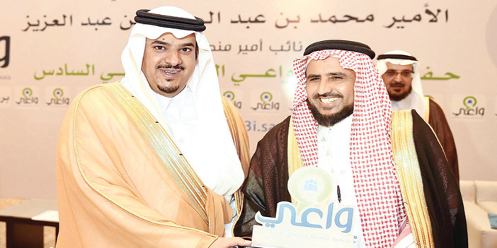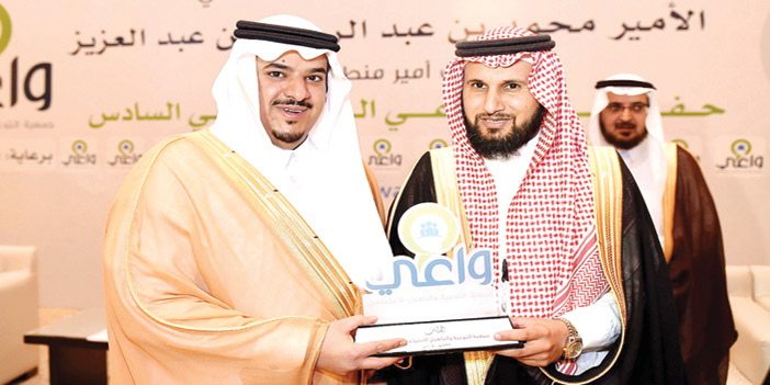 رعى صاحب السمو الملكي الأمير محمد بن عبدالرحمن بن عبدالعزيز نائب أمير منطقة الرياض مساء أمس حفل إفطار جمعية التوعية والتأهيل الاجتماعي «واعي». وكان في استقبال سموه لدى وصوله مقر الحفل رئيس مجلس إدارة الجمعية المهندس عيسى بن سليمان العيسى وأعضاء مجلس إدارة الجمعية. وبدئ الحفل الخطابي المعد لهذه المناسبة بآيات من القرآن الكريم، ثم كلمة لرئيس الجمعية عبر فيها عن سعادته بهذا اللقاء المبارك في شهر الخير والرحمة والبركة، مبيناً أن الجمعية تركز على المكون الرئيسي للمجتمع وهي الأسرة، وأنه بصلاح الأسرة يصلح المجتمع، مفيداً أن الجمعية نفذت برامج تدريبية استفادت منها العديد من الأسر. بعد ذلك شاهد الحضور فيلماً عن جمعية واعي. بعدها تم تكريم أعضاء مجلس الجمعية وشركة تبادل الراعي الرسمي للحفل. وفي ختام الحفل قدّم رئيس مجلس إدارة الجمعية درعاً تذكارياً لسمو الأمير محمد بن عبدالرحمن بن عبدالعزيز تكريماً لسموه بهذه المناسبة.